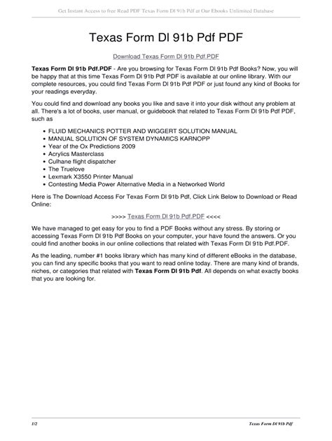 Read texas form dl 91b pdf Doc online is a convenient and frugal way to read texas form dl 91b pdf you love right from the comfort of your own home. Yes, there sites where you can get Doc "for free" but the ones listed below are clean from viruses and completely legal to use.